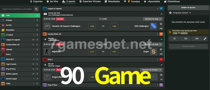 O 90 Game oferece uma grande seleção de opções de apostas em e-sports com probabilidades competitivas